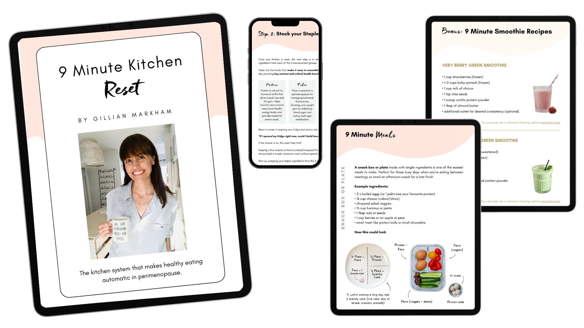 If you want a calm, practical way to stop skipping meals, steady your energy, and support fat loss during perimenopause, you’ll love my 9 Minute Kitchen approach!