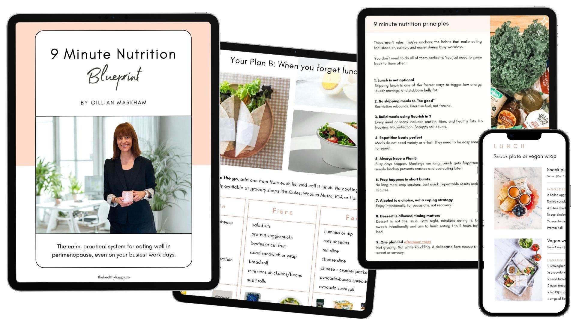 eat lunch consistently (even with back-to-back meetings), stabilise blood sugar, reduce the 3pm crash and cravings, and support fat loss without restriction or perfection.